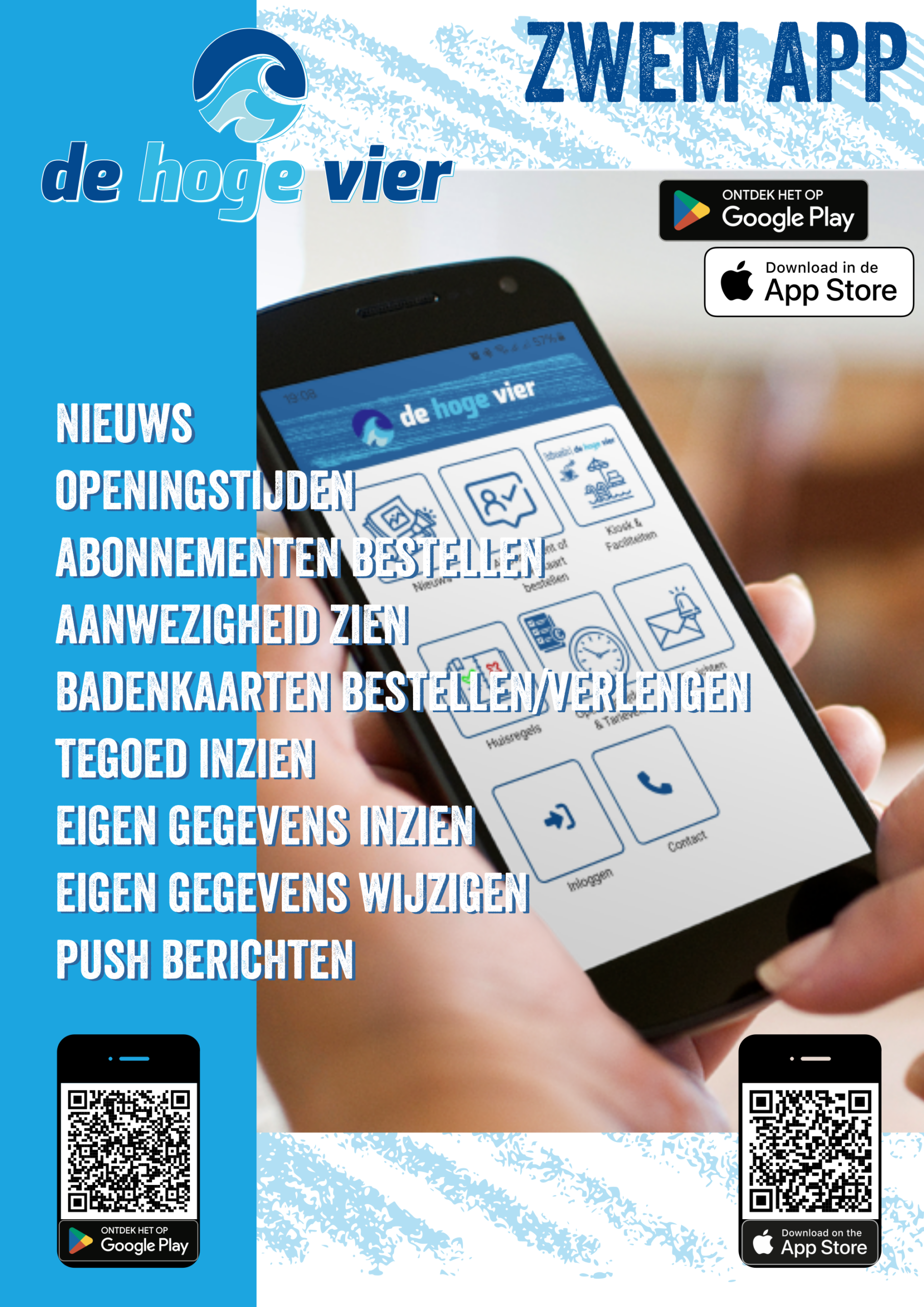De ZwemApp van zwembad De Hoge Vier speelt een steeds grotere rol in ons betaal- en aanmeldprocedure.